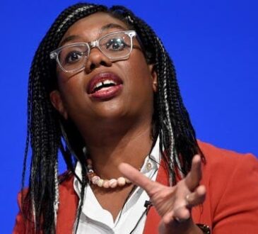 British Secretary of State for International Trade Kemi Badenoch speaks during Britain's Conservative Party's annual conference in Birmingham, Britain, on...