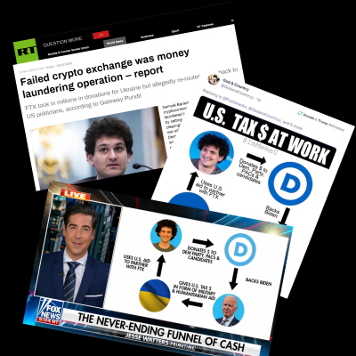 Cercone, Jeff. “U.S. tax dollars sent to help Ukraine were laundered back by cryptocurrency firm FTX to help Democrats in midterms.” PolitiFact. 15 Nov 2022.