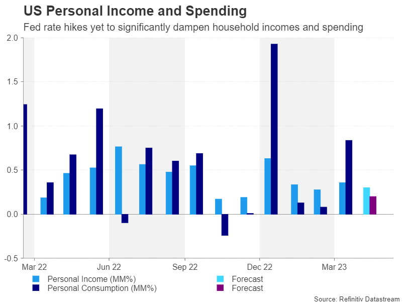 A flurry of second-tier data releases in the United States this week will culminate on Friday with the all-important PCE inflation figures (12:30 GMT). Amid a very mixed picture on economic growth lately, the incoming gauges will be scrutinized closely. But ultimately, without any definitive red flags of an imminent recession, the best policy guide for Federal Reserve officials will be the core PCE price index. The US dollar stands ready to gain from any upbeat data following renewed jitters about Europe’s growth prospects.